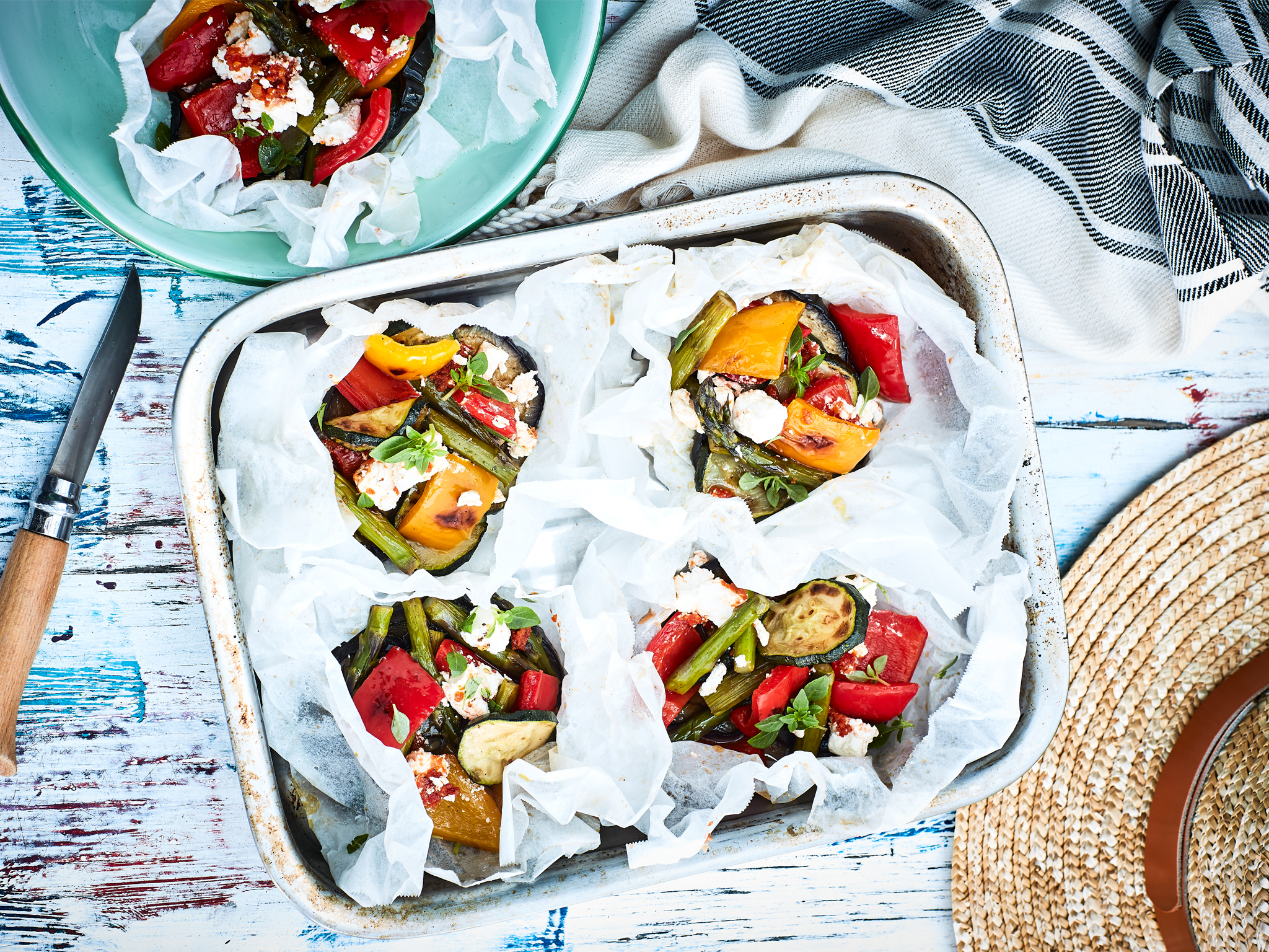 Vege parcels with sundried tomato pesto and feta