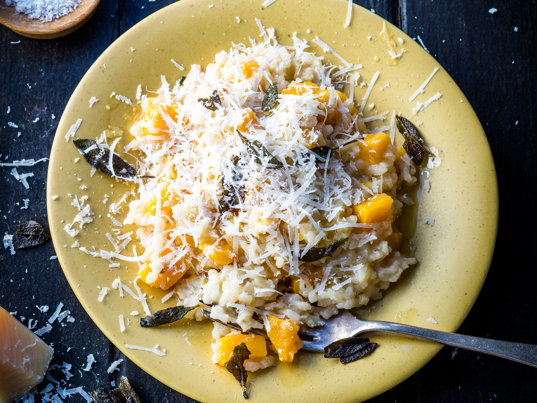 This creamy pumpkin and crispy sage risotto would be perfect made with a chardonnay.