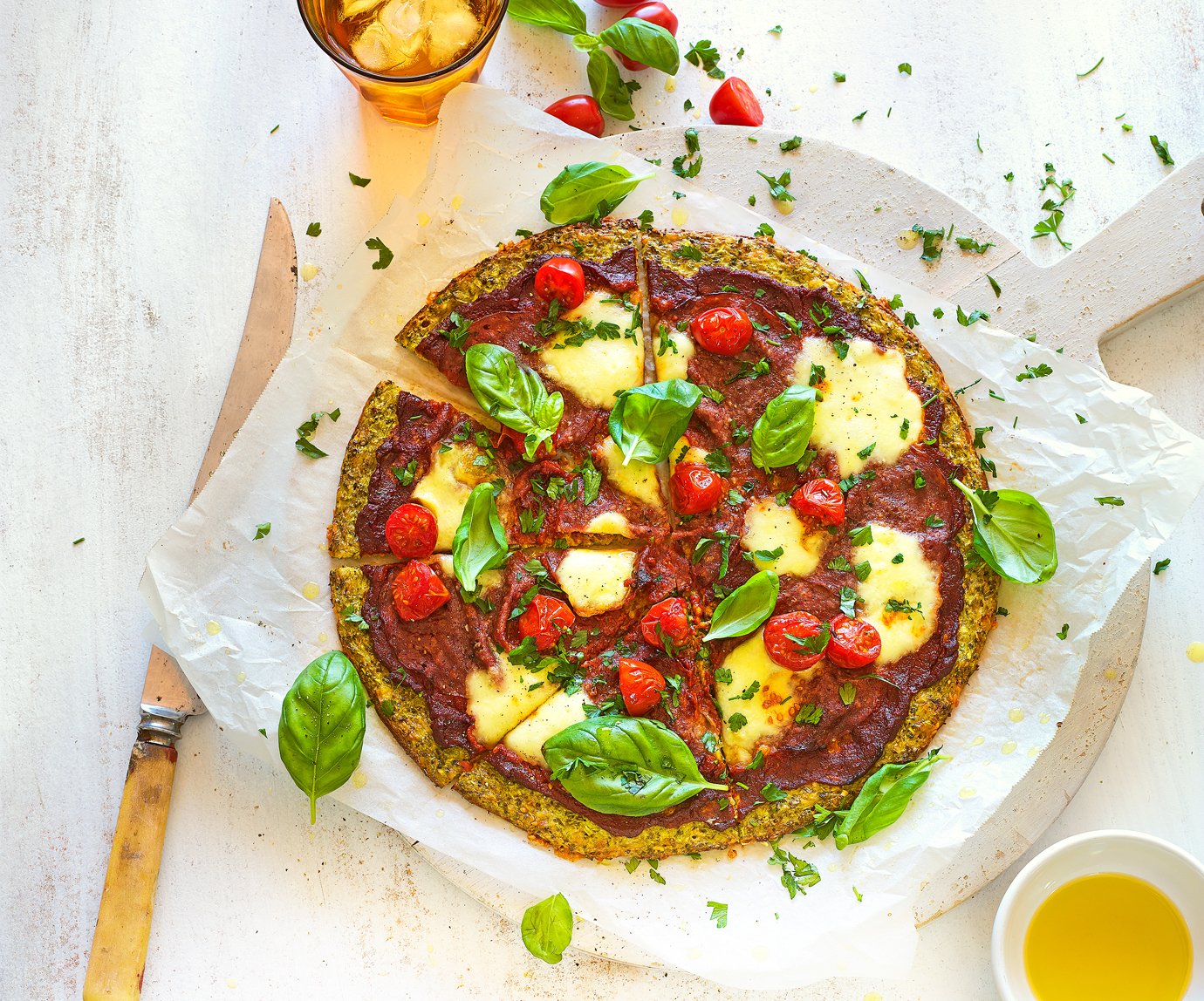Make dinner a little bit exciting with these deliciously healthy broccoli parmesan pizza bases. Topped with any ingredients you like or have on hand, these are a nutritious treat!