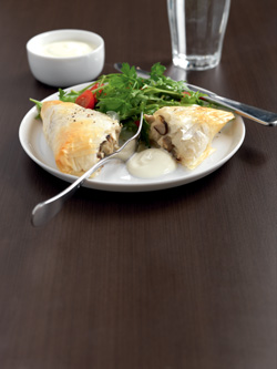 6.Preheat the oven to 180ºC. Bake the pies until golden. Serve lightly drizzled with yoghurt and a side salad.
